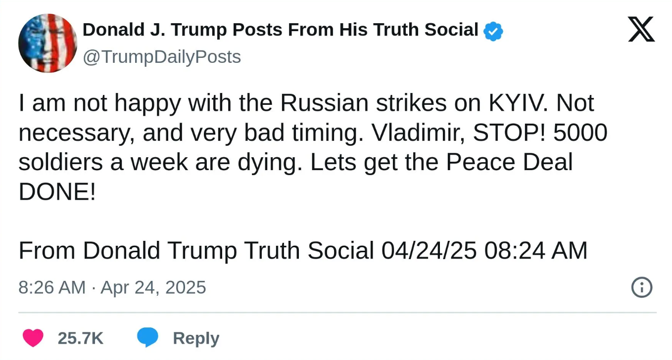 Trump has conspicuously failed to deliver on two of his biggest and most ridiculous "Day One" promises — reducing inflation and ending the war in Ukraine.