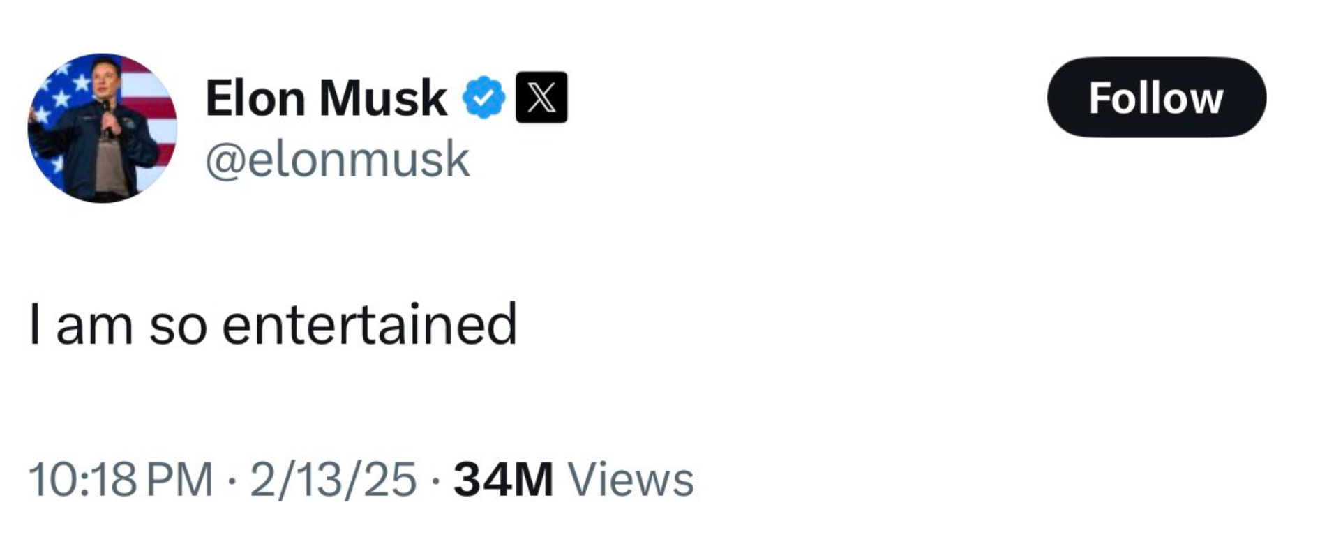 In the first days of the new regime, Musk used his wealth-derived political power to terrorize the world's most vulnerable people. Now he wants to you to clap as he takes a chainsaw to every corner of government and "save money" by "eliminating waste" in areas such as finding cures for pediatric cancer and Alzheimer's.