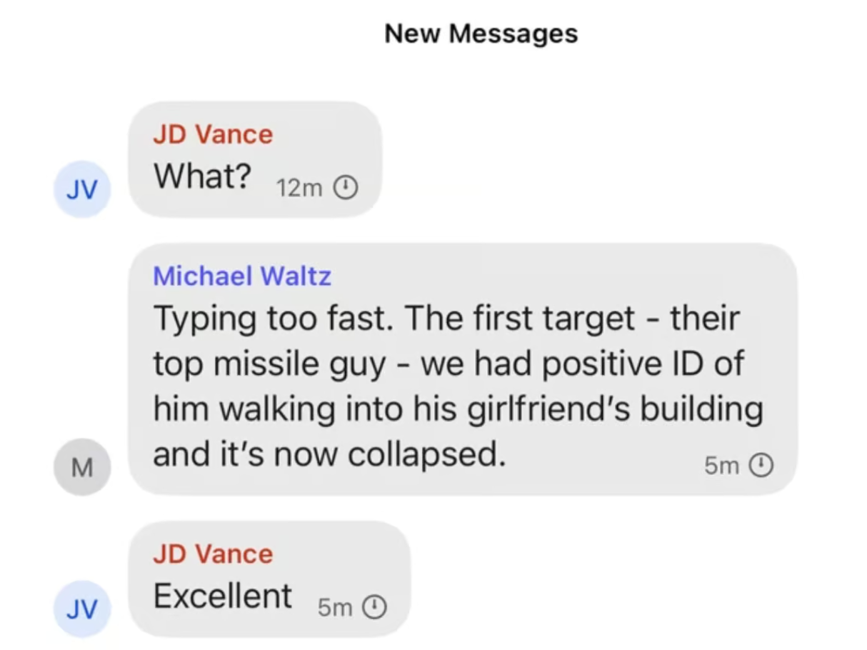 Lost amid all the tumult of the context of the group chat is the content itself.... We have clear documentary evidence of US officials targeting an entire civilian building to kill a single target.