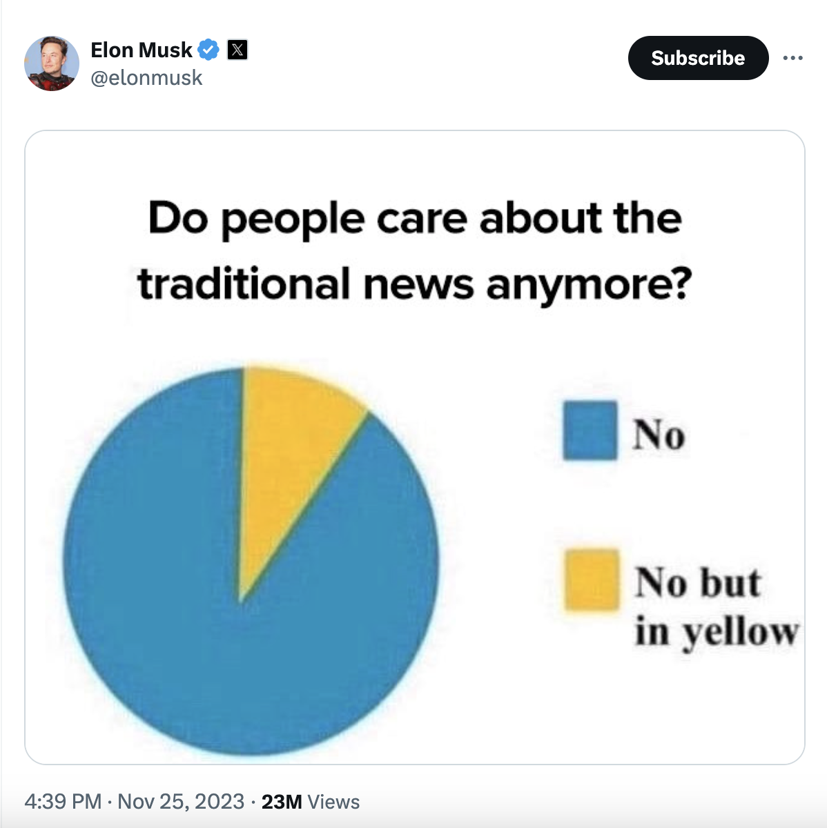 In other words, Grok doesn't even count news as news unless it gets posted on X.