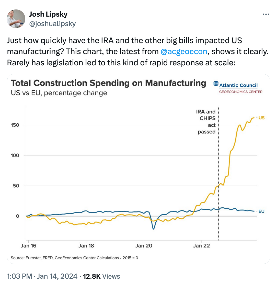 Biden's future-focused policies—including the Inflation Reduction Act, Bipartisan Infrastructure Law, and CHIPS and Science Act—have created an investment "supercycle" that will continue to create jobs and increase American competitiveness for years to come.