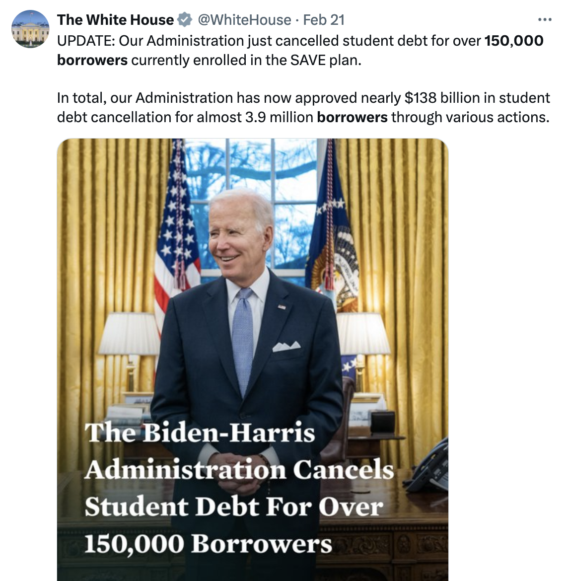 FACT: Biden has reduced student debt by nearly $138 billion for almost 3.9 million borrowers.