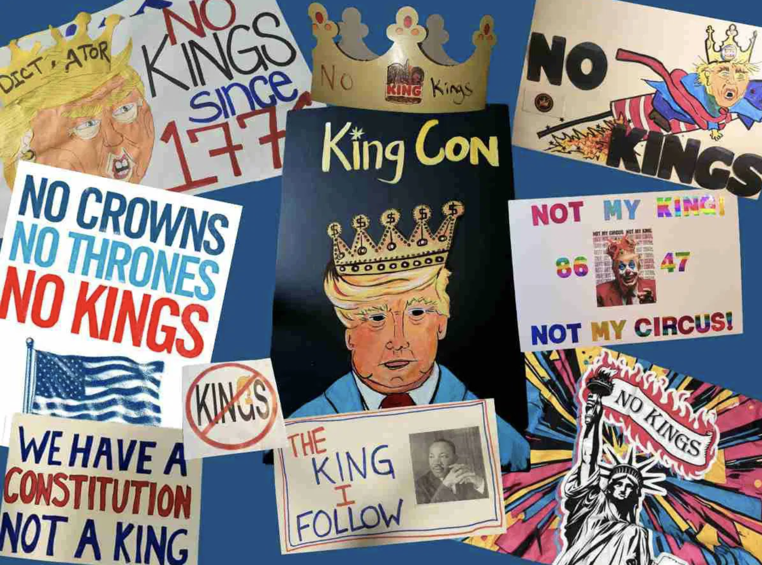 Millions of Americans are joining more than 2,200 demonstrations for today's "No Kings Day" protests.