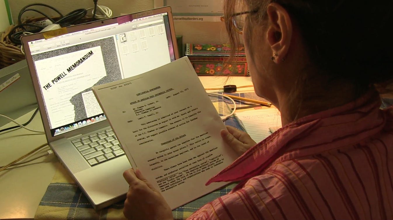 One year later, in 1971, there was another secret memo; the secret memo which has had an astounding impact on corporate influence in America today. The U.S. Chamber of Commerce hired corporate lawyer Lewis Powell to come up with a detailed master plan on how to push a free-market economy philosophy and how to squelch the dramatic social movements going on at the time. It was basically hitting back against the New Deal.