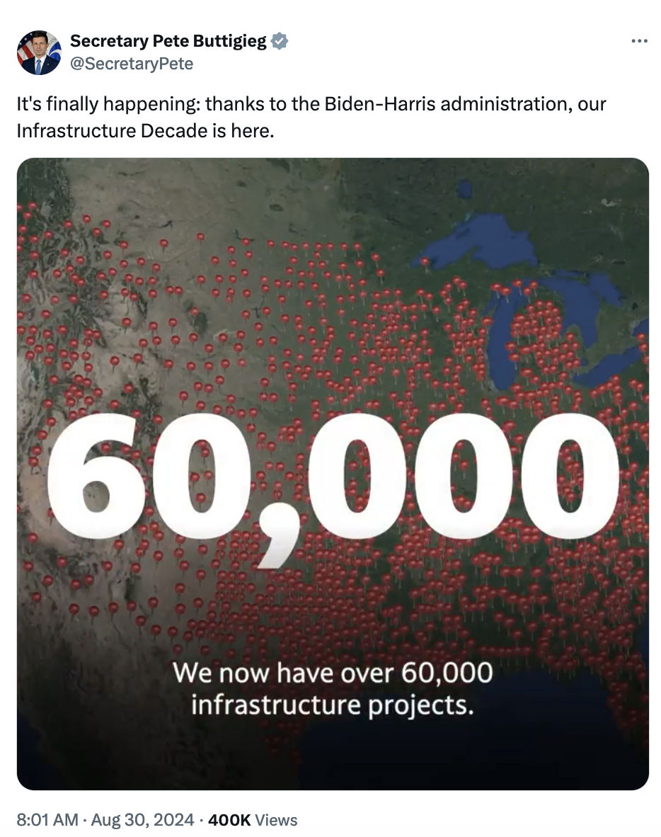 Beyond the more than 15 million jobs created under Biden-Harris, we've also moved on from jokes about Trump's "infrastructure weeks" to actually breaking ground on an "infrastructure decade."