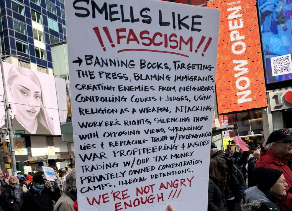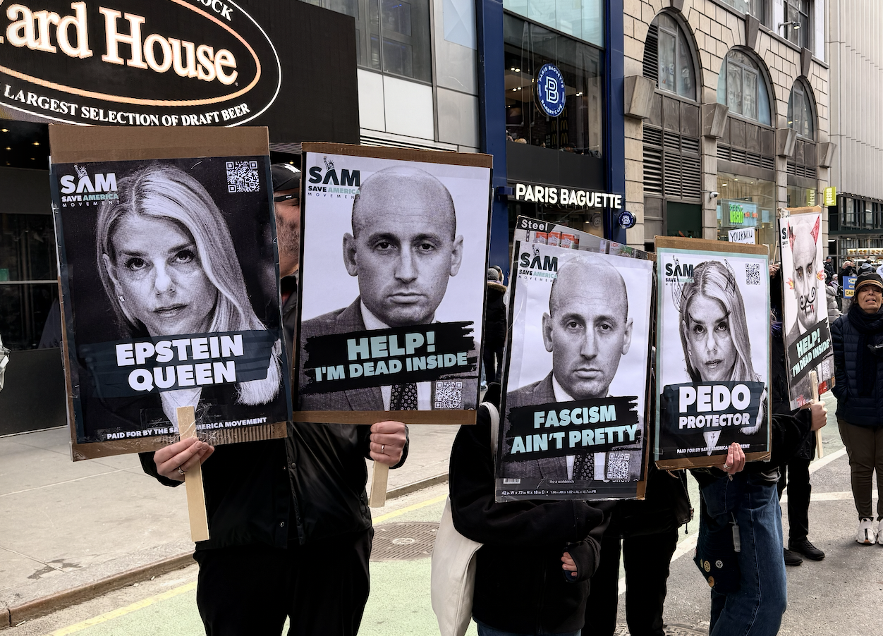 These New Yorkers were united in denouncing Trump, resisting fascism, and standing up for democracy. Many also carried signs opposing ICE and mass deportations, the war in Iran, the Epstein cover-up, and more. Others singled out members of the Trump regime for their role in executing Trump's policies and protecting pedophiles.