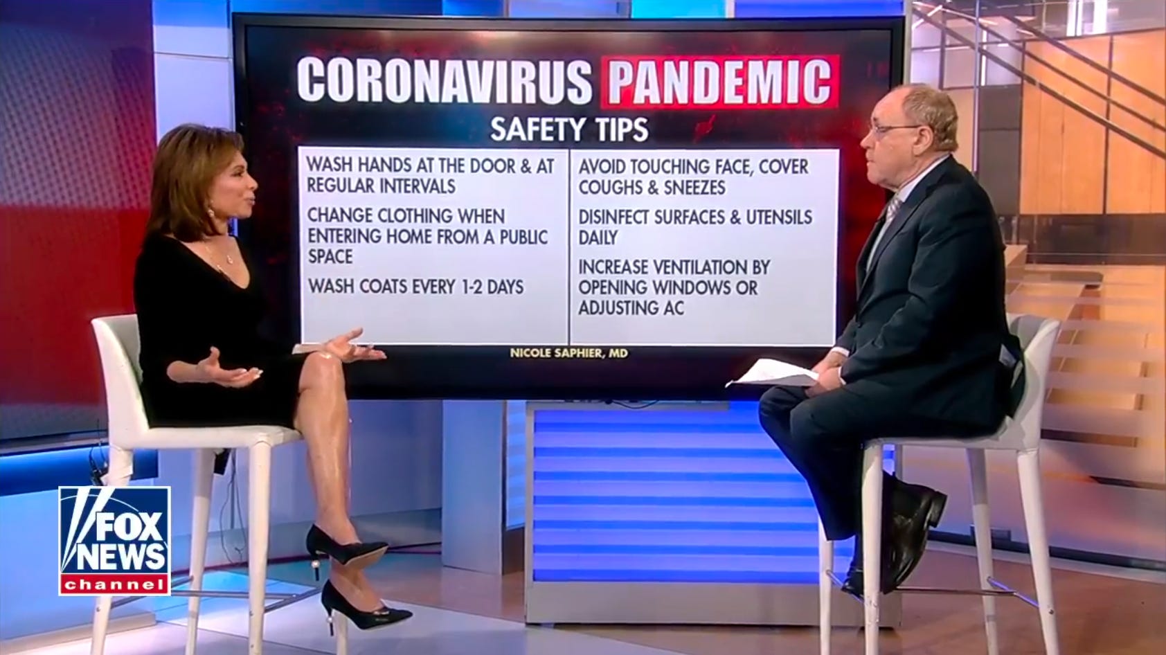 By March 14, even Judge Jeanine was forced to admit this was a National Emergency, offering viewers some of the most extreme “safety tips” advice I’ve seen proposed by anyone, including “Wash Coats Every 1-2 Days.”