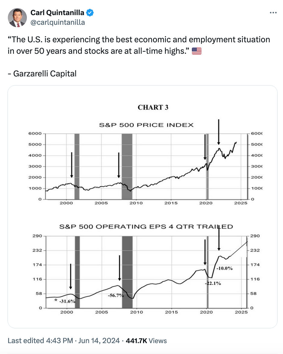 As Garzarelli Capital said this month: “The U.S. is experiencing the best economic and employment situation in over 50 years and stocks are at all-time highs.”