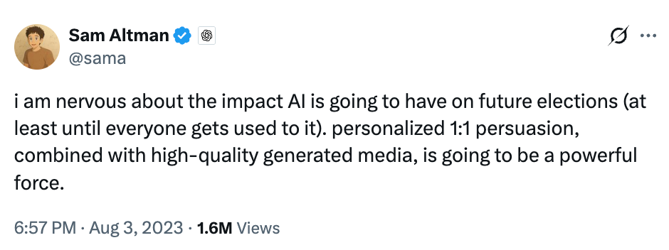 The kind of 1:1 persuasion that Sam Altman warned us was coming — and might destroy us — way back in 2023.
