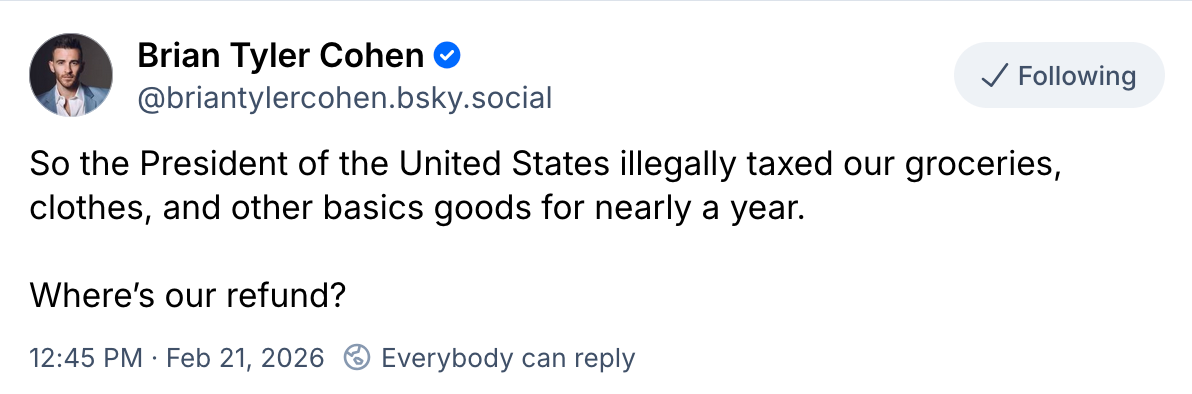 That record was blown away on February 20, 2026, when the U.S. Supreme Court confirmed that an audacious heist conducted in broad daylight by Donald Trump, America's best-known living sex predator, had netted (as of mid-December) $133 billion in illicit gains, syphoned directly from U.S. businesses and consumers.