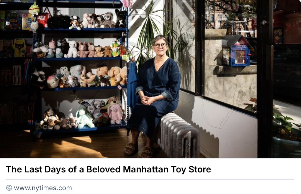 In July 2025, The New York Times reported on the closure of the beloved NYC toy store West Side Kids.