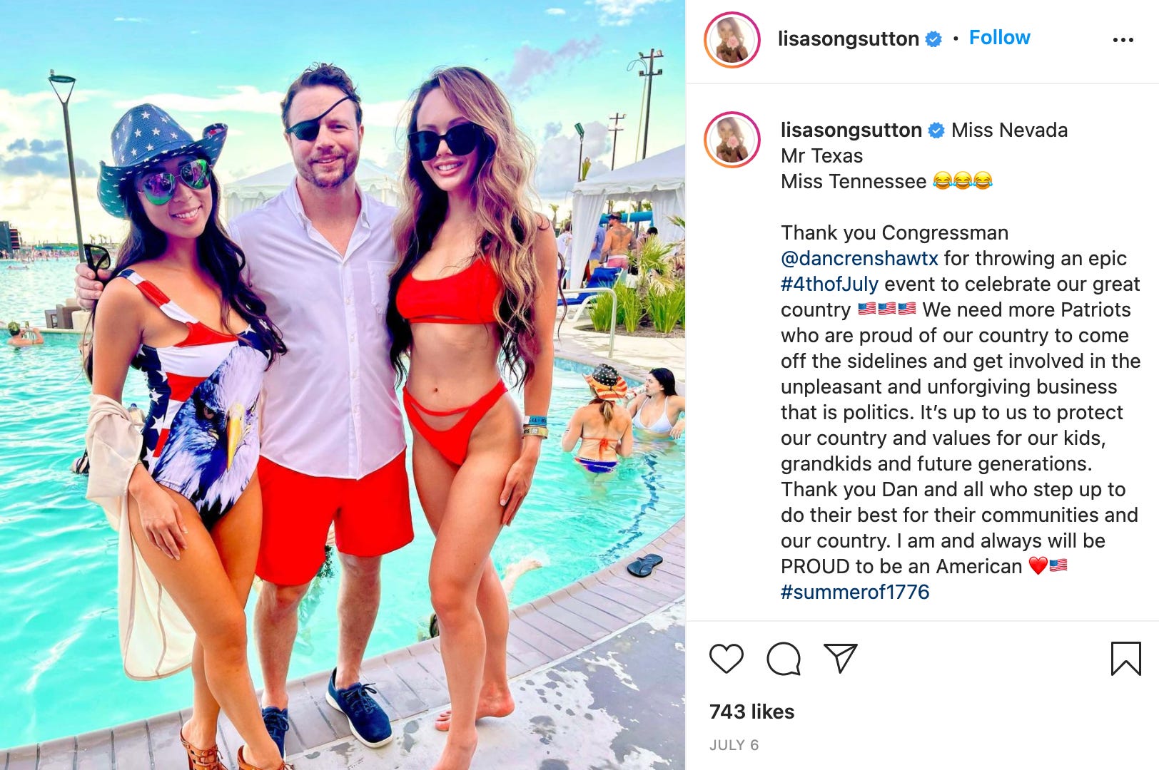 Among those promoting the unvaccinated lifestyle of freedom-loving swimsuit models this past July was Texas Rep. Dan “Do Not Comply” Crenshaw whose campaign spent at least $144,000 on an “epic” 4th of July event. According to Forbes, “the party’s entertainment included a country singer, drone light show, two DJs and a Blink-182 tribute band.”