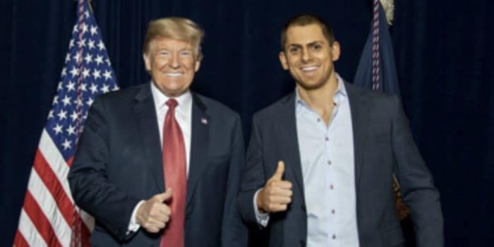 This is Trump posing with GOP operative Anton Lazzaro, who in August 2021 was arrested and indicted on federal sex trafficking charges for recruiting six minor victims to engage in commercial sex acts. He is now serving 21 years in prison.