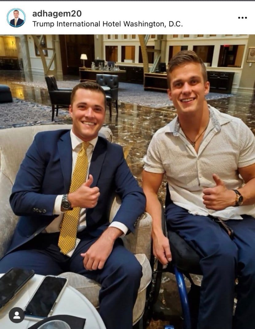 Another member of Versatigui's child-porn group was Trump Commerce Department official Adam Hageman, seen here with Madison Cawthorn at the Trump International Hotel DC. Hageman previously had access to impressionable children as an events planner for Charlie Kirk's youth indoctrination group Turning Point USA. Hageman was sentenced to 5.5 years for his child porn offenses in 2022.