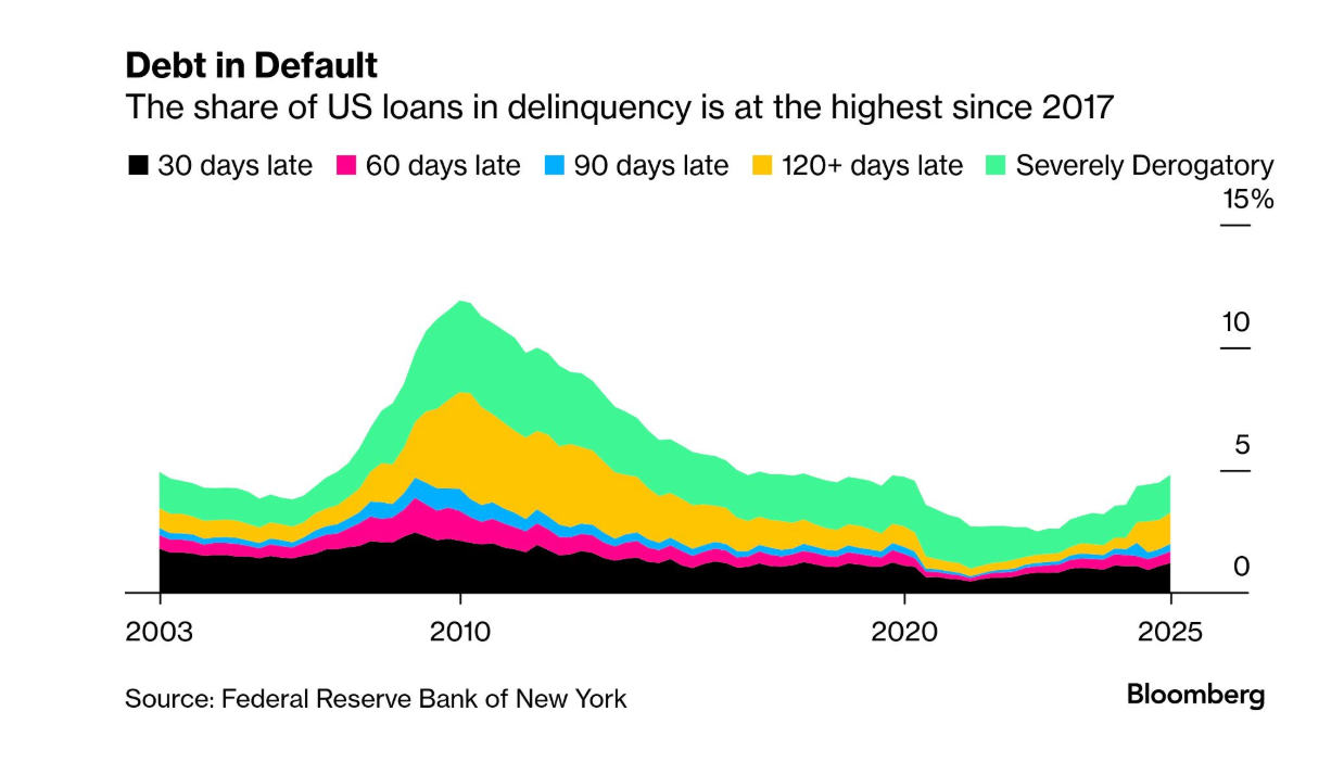 U.S. consumer delinquencies are surging