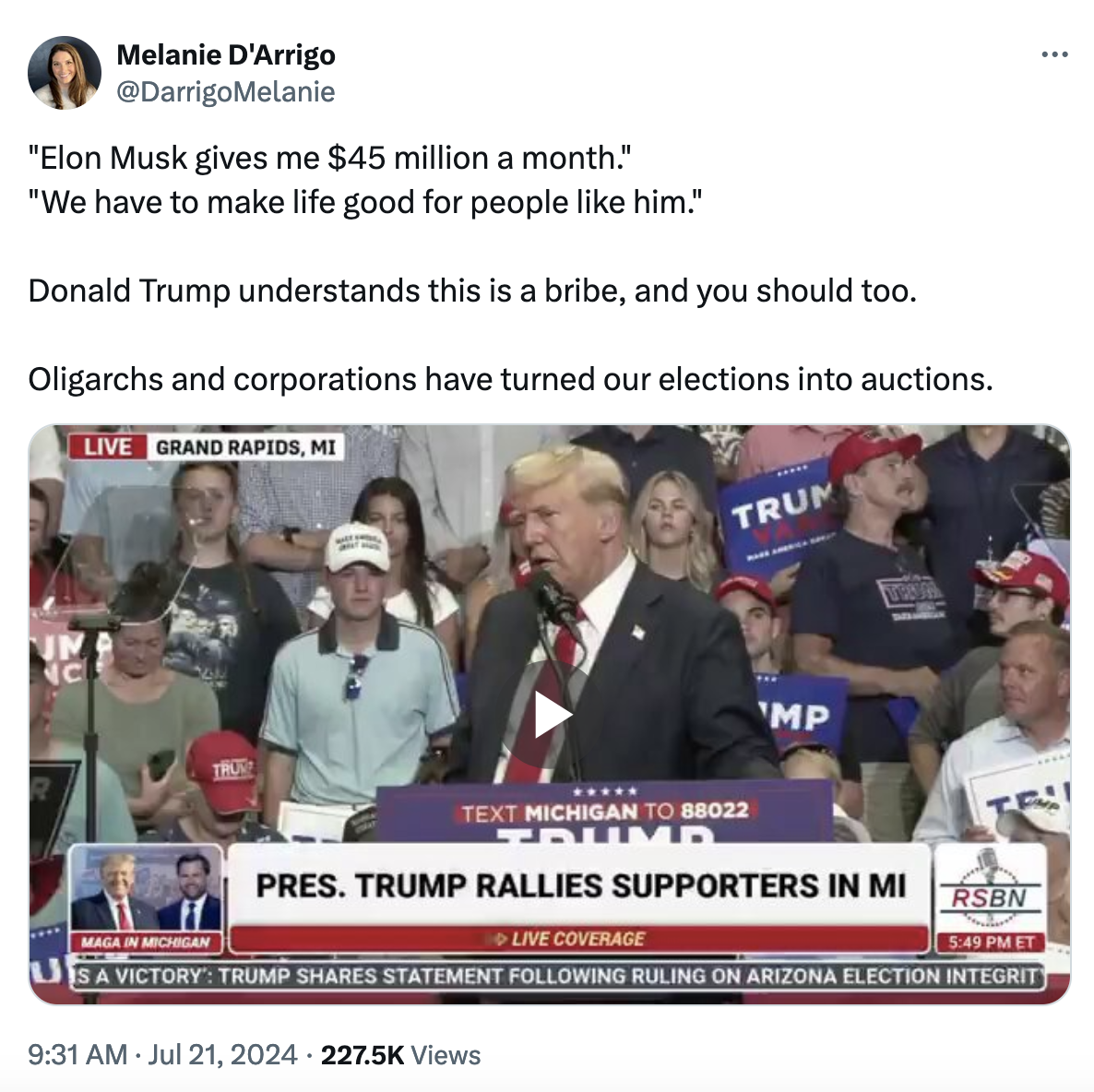 Yesterday evening, at his rally in Michigan, Trump fact-checked that tweet and declared it: TRUE.
