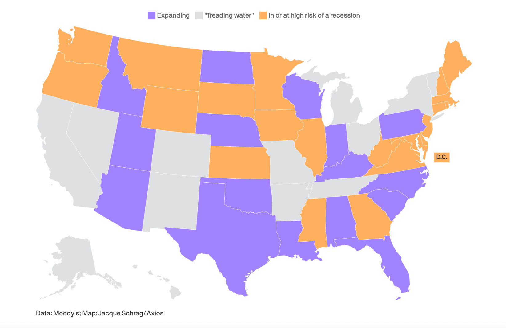 States making up nearly a third of U.S. GDP are either in or at high risk of recession, another third are just holding steady, and the remaining third are growing.