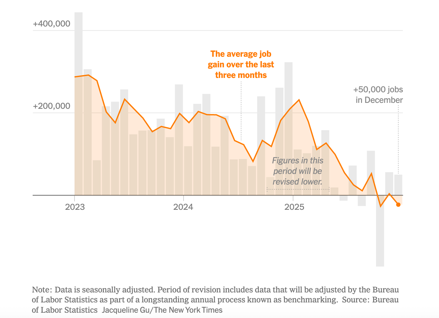The U.S. economy created an average of just 49,000 jobs per month during 2025.