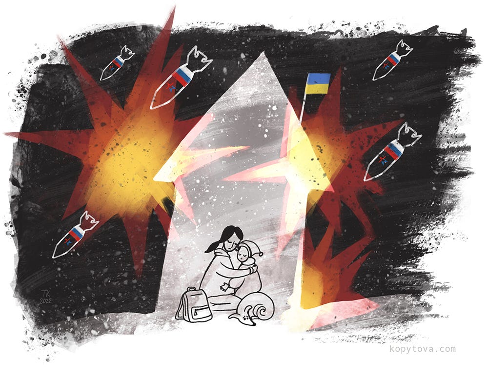 The latest book Tetiana Kopytova illustrated is titled “The Battle for the City” (2022). The book description says, “It is designed to help children who, against their will, become participants in this violent war, to believe that light will triumph over darkness, and evil will certainly be punished.”