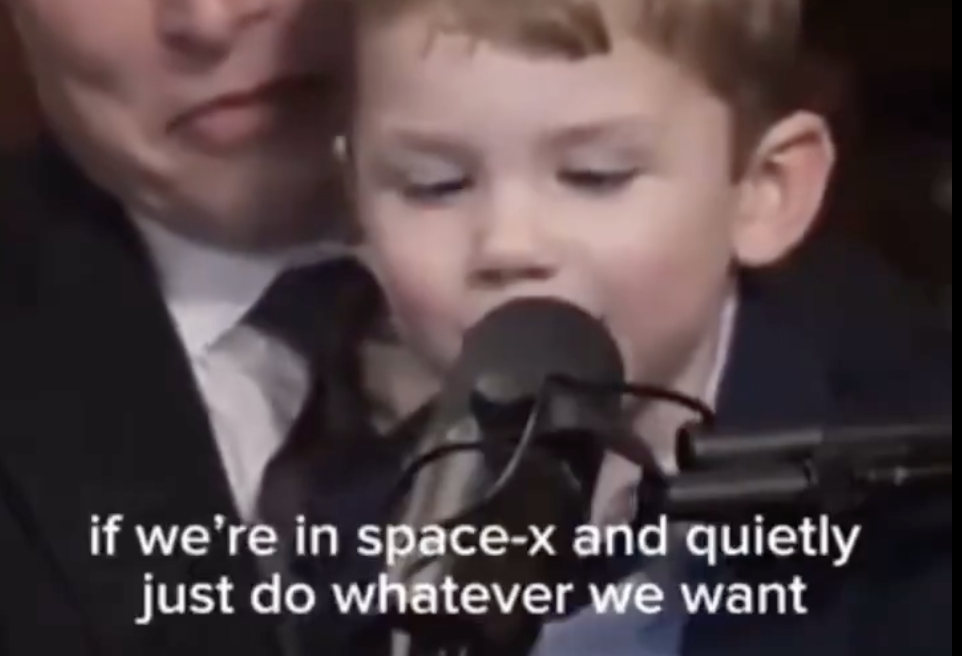 Ten seconds later, the child blurts out to Carlson, "If we're in SpaceX and quietly just do whatever we want."